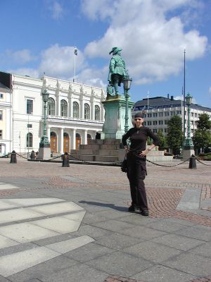 Von dort latschen wir über den Södra Vägen und die Östra Hamngatan in Richtung Hafen. Dort stehen wir dann vor einem *ähem* etwas sehr modern geratenen Opernhaus und einer riesigen Tunnelbaustelle. Wir steigen ein bisschen durchs Hinterland (es gibt viele Treppen, und Göteborg erweist sich als recht hügelig), latschen zurück zum Gustav Adolfs Torg, wo wir eine Kekspause einlegen. Das Gustav Adolf Denkmal ist lt. Baedeker der zweite Guss der Skulptur, da der erste nach der Strandung des Schiffes in Bremen blieb - die Göteborger Schweden wollten einfach das von den Helgoländern geforderte Bergegeld nicht bezahlen.