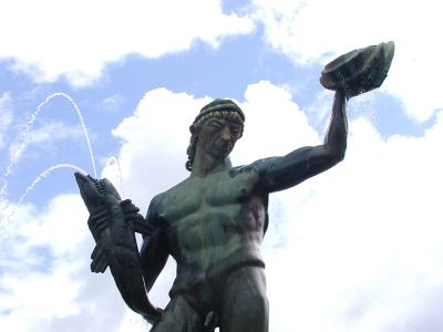 Nochmal der Poseidonbrunnen. Vor dem Brunnen traf ich einen Schweden, der ebenfalls mit einer Oly2100 UZ unterwegs war. Wir haben dann spontan die Kameras getauscht und jeweils Bilder von der anderen Gruppe gemacht. Dummerweise hat sich der nette Schwede völlig in der Belichtung vergriffen - das Bild von uns ist völlig unterbelichtet und nicht zeigbar *schluchz* ...