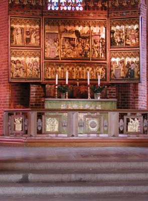 Türme sind immer gut: 1. sind sie meistens hoch, deshalb versprechen sie eine gute Aussicht, und 2. haben Türme meistens Wendeltreppen, auf denen mich Annett abhängen kann. Natürlich kommt es, wie es kommen muss: Der Turm ist ausgerechnet dieses Jahr voll eingerüstet und deshalb nicht begehbar. Prima. Das hätte man uns auch sagen können.