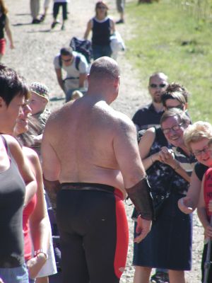 Fast keine Wolke am Himmel! Unter den eingesammelten Prospekten befindet sich die Ankündigung für "Ritterspiele" in Båstad, und logischerweise gibt es für uns damit kein Halten mehr. Die Anreise gestaltet sich dank sehr geschickte Parkplatzeinweiser äußerst unkompliziert. Wir erleben für ein paar Stunden wie wild konsumierende Schweden, unglaubliche Schlangen an Bratfleischständen, Kinder bekommen alles Gerassel gekauft, was man sich nur vorstellen kann. Außerdem bemerke ich erstmals, dass die meisten Schwedinnen zwischen 20 und 30 scheinbar dauerschwanger sind - die Renten scheinen sischa! :) Ich fällt uns hier auch auf, was wir im schwedischen Fernsehen schon vermittelt bekommen hatten: die Schweden haben ein heftiges Gewichtsproblem. Ich selber habe ja wirklich keine Traumfigur, aber stellt Euch bitte jede Menge Frauen und Männer vor, die mehr als meinen Vorbau mit sich herumtragen - und die Frauen noch dazu in aufzreizend nabelfreien T-Shirts ... Sowas nenne ich Selbstvertrauen.