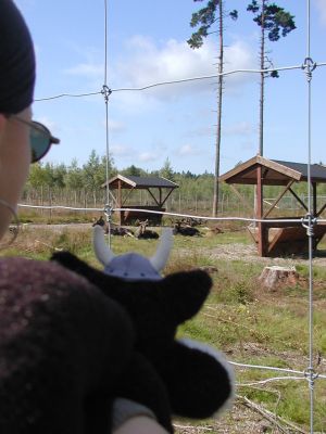 Wow, ein Wetter zum Helden zeugen. Da lt. Nachbar die Strecke nach Ljungby ja frei sein soll, verschieben wir das aber und fahren nach Lagan, ca. 10 km nördlich von Ljungby, in den Elchpark. Tolle Werbung - aber totaler Nepp! 2 Gehege mit vielleicht je 80*80 m, in einem davon 6 Elche (ein alter Bulle, ein Jungbulle, drei Kühe, ein Neuelch ...) - das wars. Ok, dafür kostet der "Anblick" nur 3,40 €. Der Souvenirladen gegenüber ist fast größer und üppig ausgestattet. Wir legen uns dort ein neues Familienmitglied und Bruder für Harald zu: Nils Nilsson, einen Plüschelch.